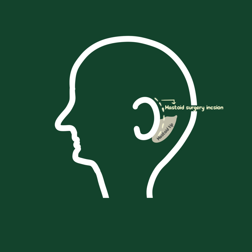 Mastoidectomy is a surgical procedure to remove infected or diseased tissue from the mastoid bone, which is located behind the ear. The mastoid bone is a part of the temporal bone and contains air cells that can become infected or diseased, causing symptoms such as ear pain, drainage from the ear, and hearing loss. Mastoidectomy surgery clears the infection, restores hearing and promotes better drainage of the air cell system thereby preventing further infections.