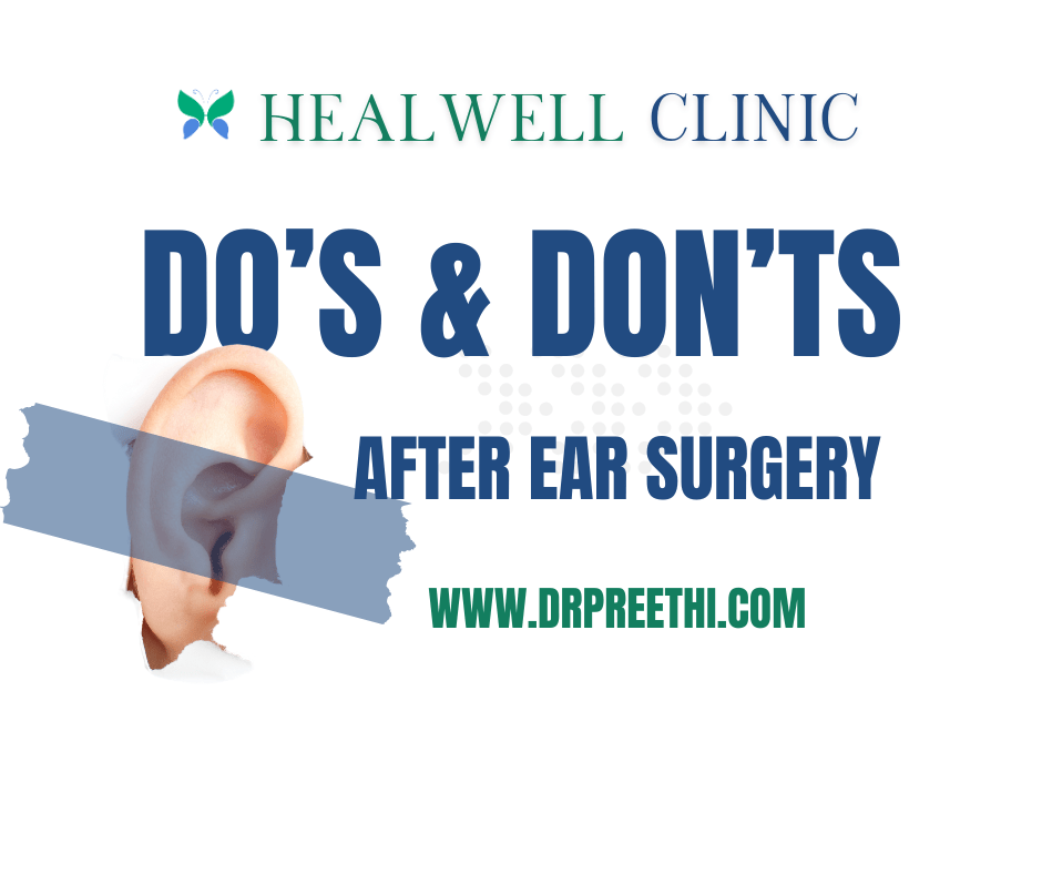 - Fluid drainage from the ear: This is common and may be blood-tinged initially. Your surgeon will likely place a cotton ball loosely in the outer ear to absorb this. Change it gently as needed.